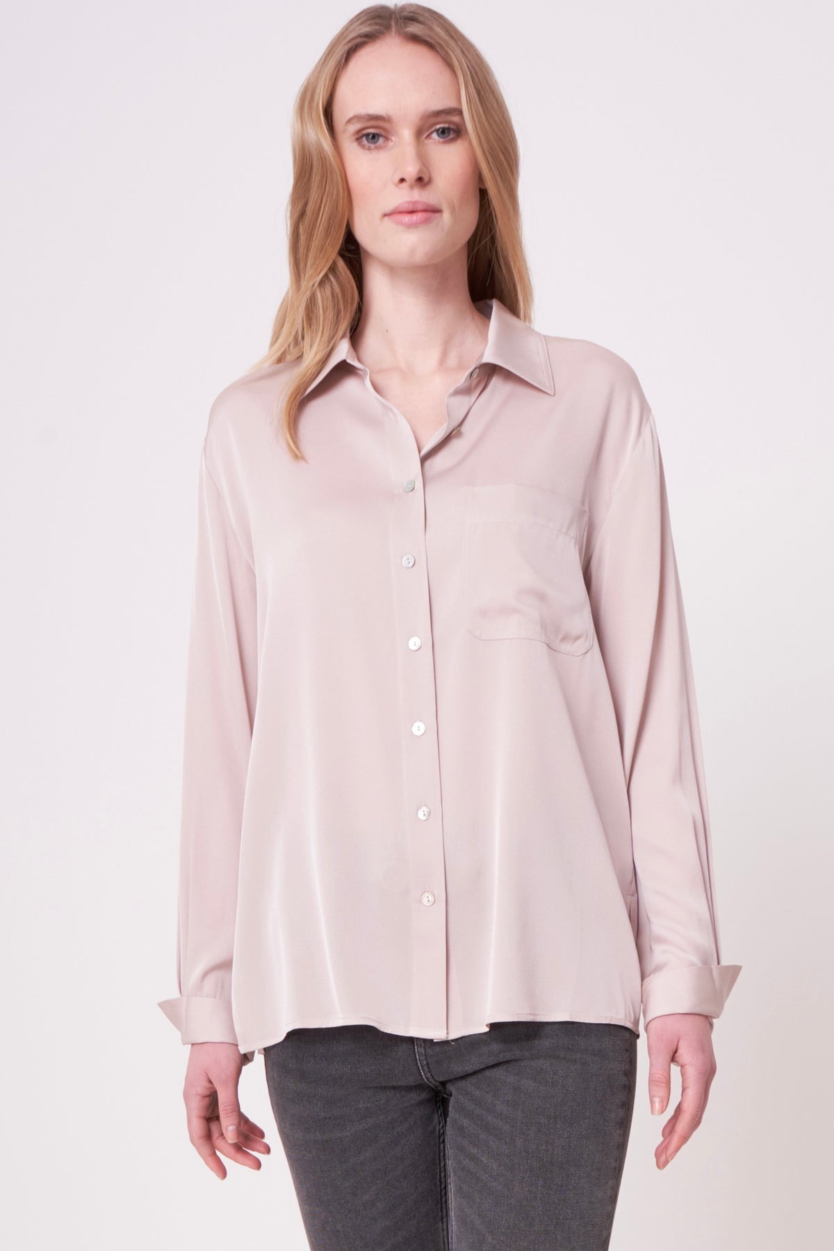 REPEAT Repeat Silk V Neck Top With Chest Pocket