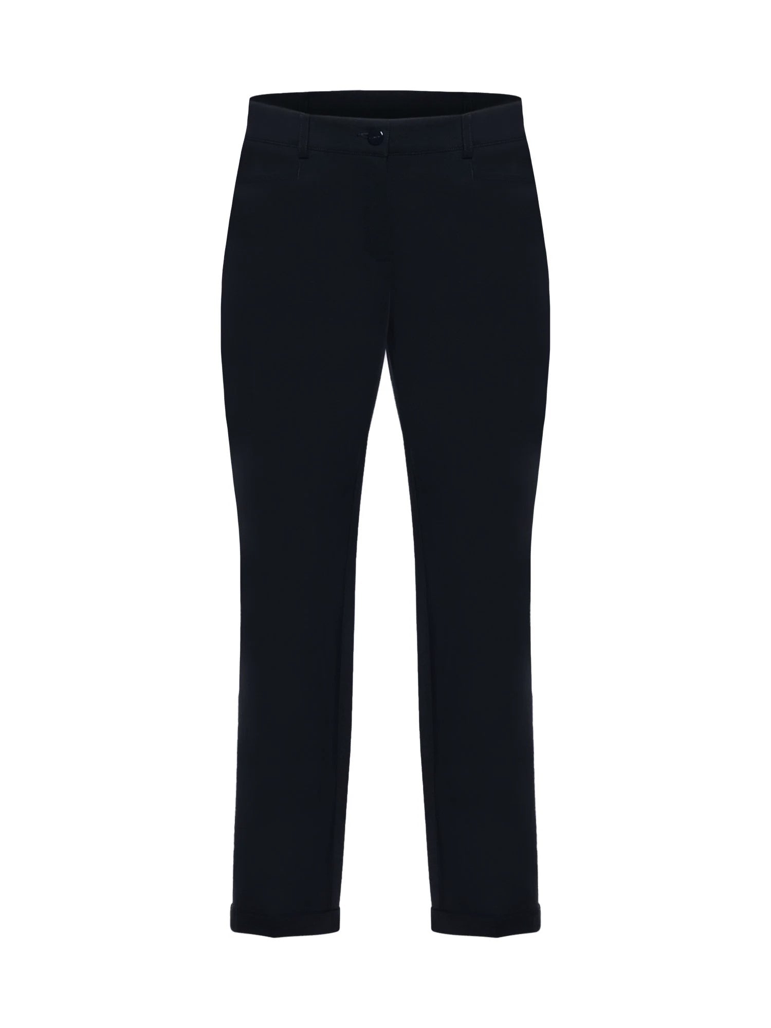 The Kathreen pant by Cambio offers a refined silhouette with a tailored straight-leg cut and cuffed hems. Designed with belt loops, a clean front closure, and discreet pockets, these versatile trousers in deep navy deliver polished ease, seamlessly balancing modern elegance with everyday wearability.