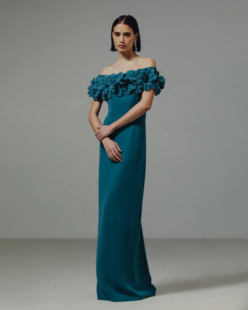 CATHERINE REGEHR Catherine Regehr Off Shoulder Jagged Tulip Gown