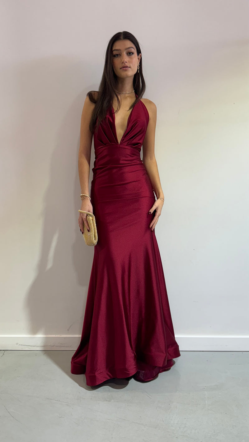 JESSICA ANGEL Jessica Angel Crossed Straps Halter Gown
