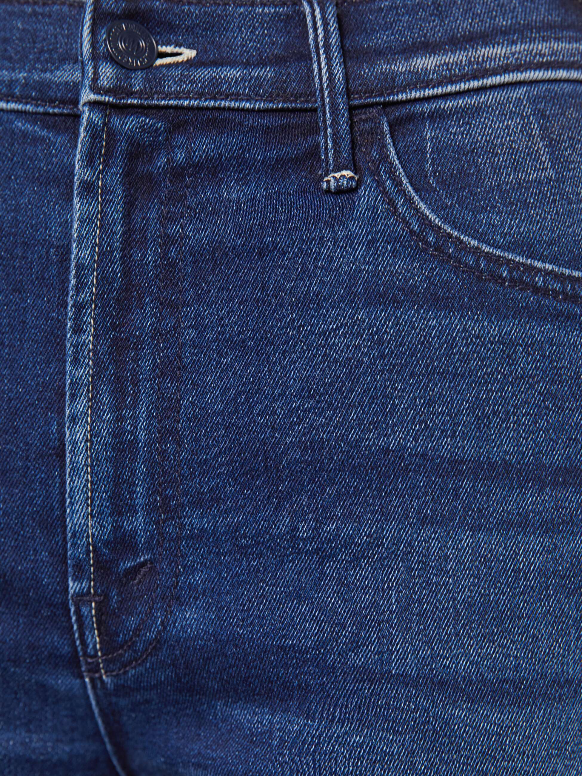 Team spirit. 70s-inspired wide leg jeans with a high rise, 33-inch inseam and a clean hem. Made from stretch denim, Homecoming High is a dark blue with subtle whiskering and fading at the knees.