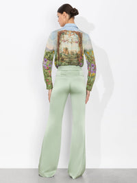 This stunning top is wearable art! Crafted in the novel Dusk to Dawn print, this pattern is our reinterpretation of Claude Monet's "Femmes au Jardin" oil painting. Handwritten love letters are layered over our own unique designs to bring the women in his garden to life. Made from a semi-sheer, silk crepe de chine, it has an airy body that’s the perfect weight for warm spring days. Perfect for making a statement, this blouse can be styled effortlessly with tailored trousers for work or with denim for weekend.