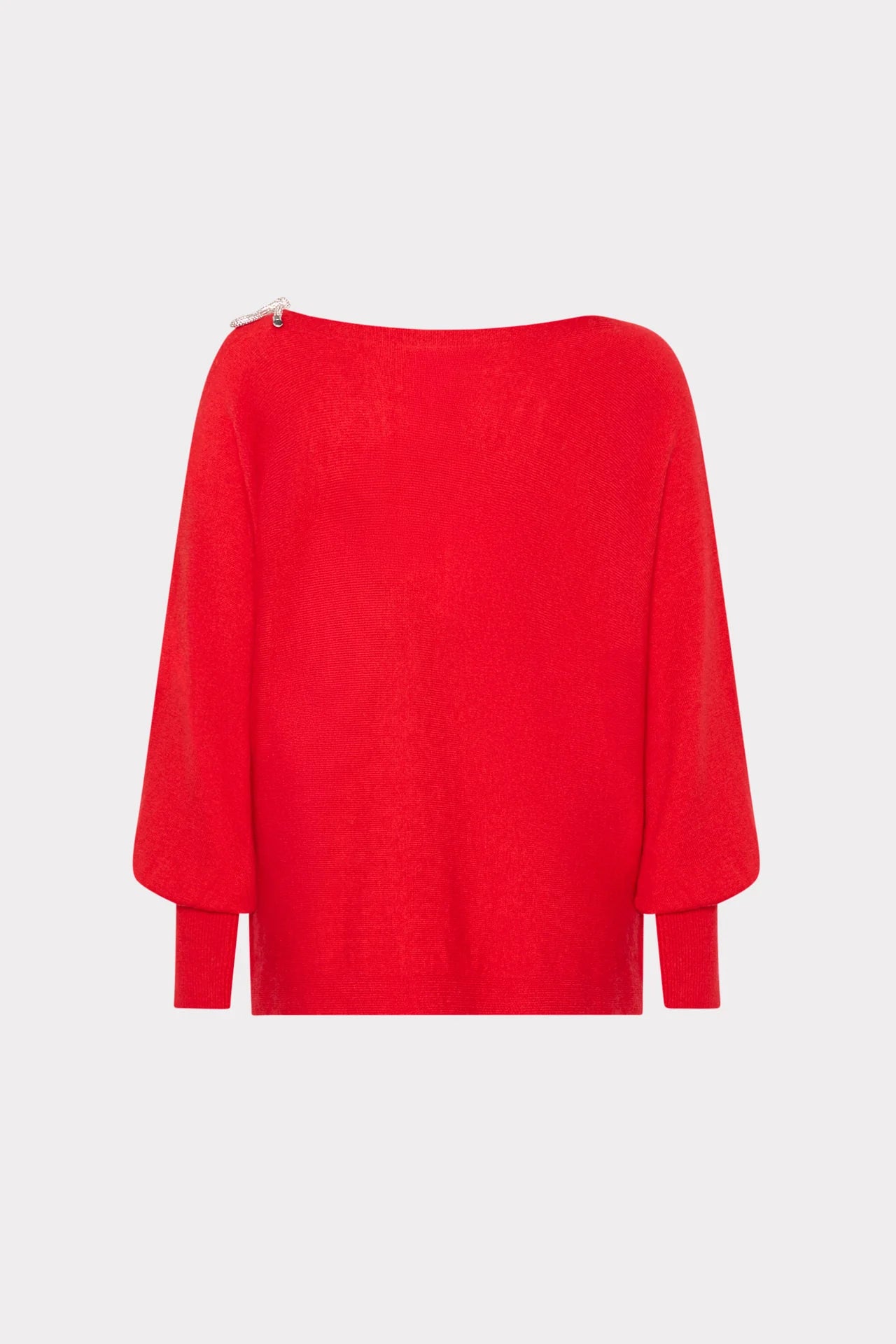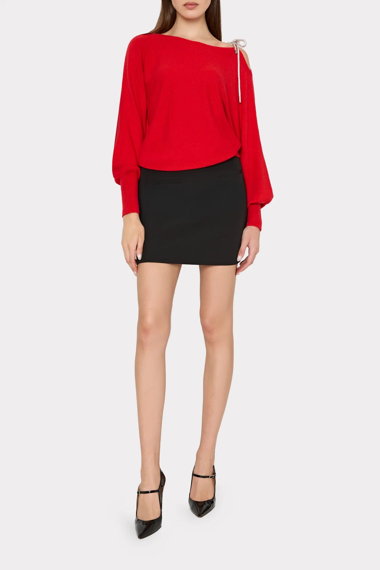 Milly Ida Crystal Bow Cold Shoulder Sweater