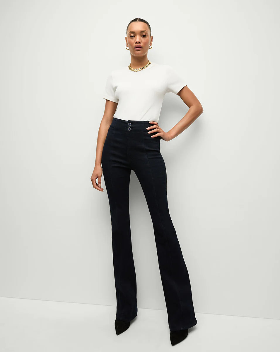 Made in LA in a sophisticated dark wash, the Beverly is fitted through the hips and thighs with a subtly flared leg. A Hollywood waist ensures a sleek, smooth look while the super-stretch denim offers a flattering look with a flexible fit. Tuck in any of our tops and add stilettos for an elongating silhouette.