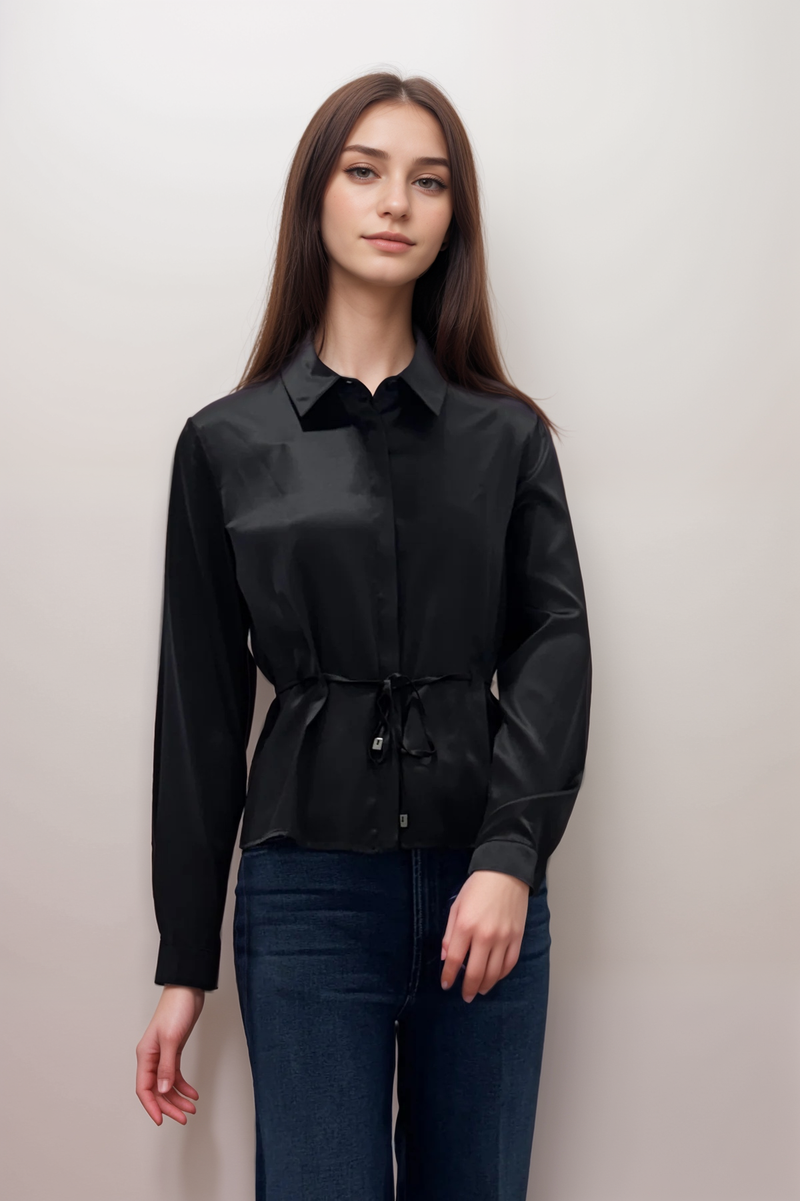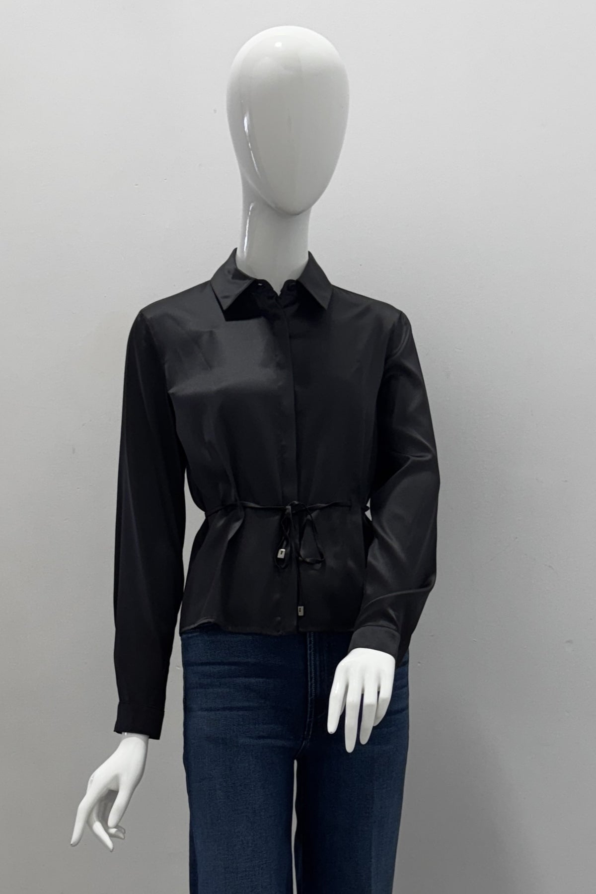 PUROTATTO Purotatto Tie Waist Hidden Buttons Silk Blouse