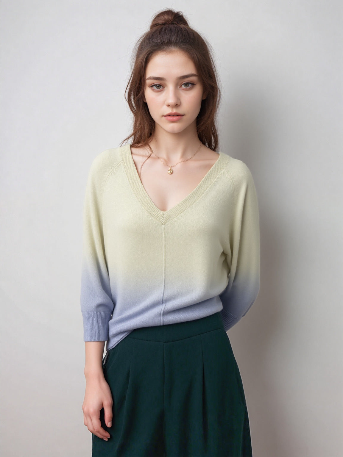 A showcase of luxury and sustainability. Immerse yourself in the comfort of 100% organic cashmere with this knitted pullover. The V-neck design and ombre detailing add a touch of sophistication, making it a versatile and stylish choice. Elevate your wardrobe with this eco-conscious piece from Repeat, where comfort meets conscientious fashion in a perfect blend of timeless allure.