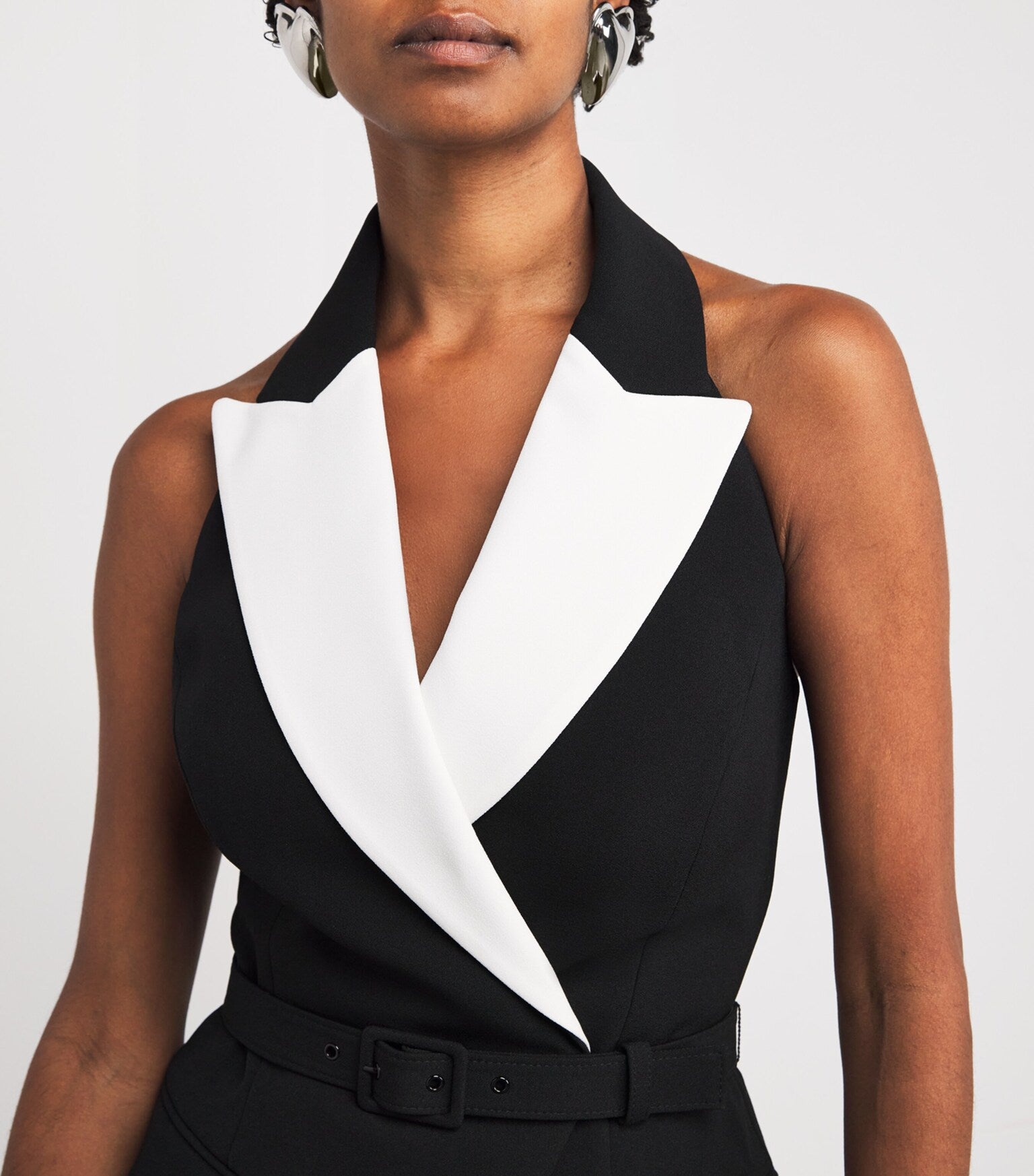 Australian label Rebecca Vallance excels at combining a timeless preppy aesthetic with a creative approach to structure and silhouette, as seen with the Emma midi dress. Taking notes from traditional tailoring, it fuses together a blazer-inspired bodice with a halter neckline and pleated skirt, bringing a sense of playfulness to the monochrome design.
