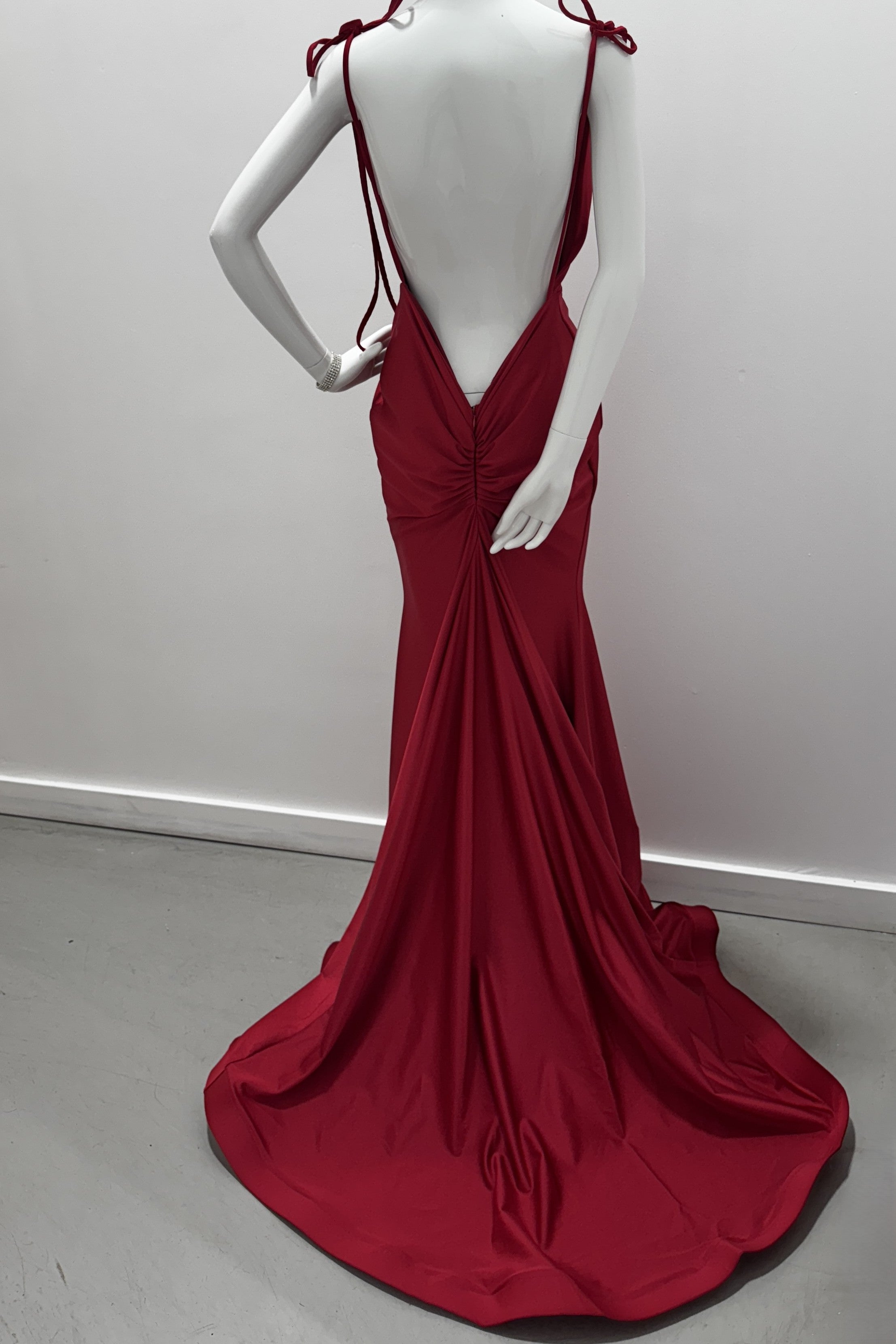 La robe Jessica Angel est une vision époustouflante de l'élégance, conçue pour faire sensation lors de tout événement haut de gamme. Cette pièce exquise présente un décolleté dos nu, orné de délicates bretelles spaghetti qui créent un cadre séduisant pour les épaules et attirent le regard sur le visage de celle qui le porte. Habilement adapté, le corsage épouse la silhouette, mettant en valeur une silhouette enviable, tandis que les détails froncés au bas du dos ajoutent une touche de féminité classique et un contraste de texture aux lignes douces de la robe.