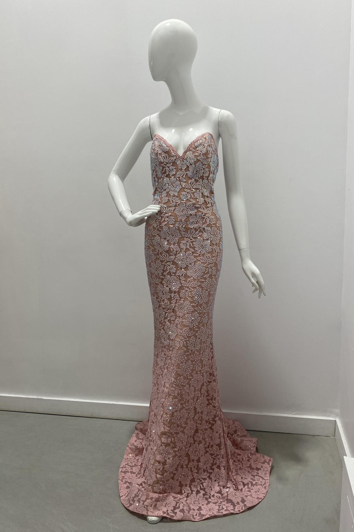 JOVANI Robe bustier Jovani avec corset, fente haute et détails en sequins