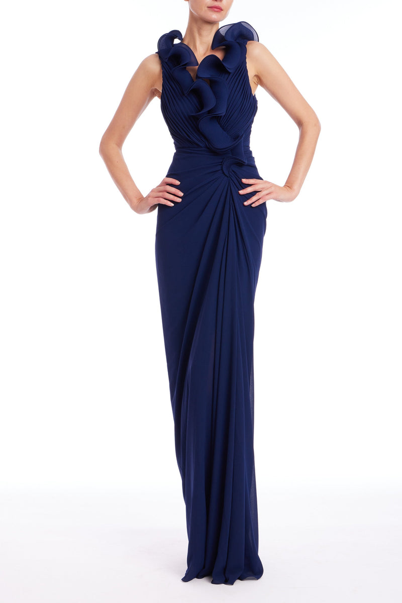 Badgley Mischka Badgley Mischka V Nk Octo Rffl Gown Navy