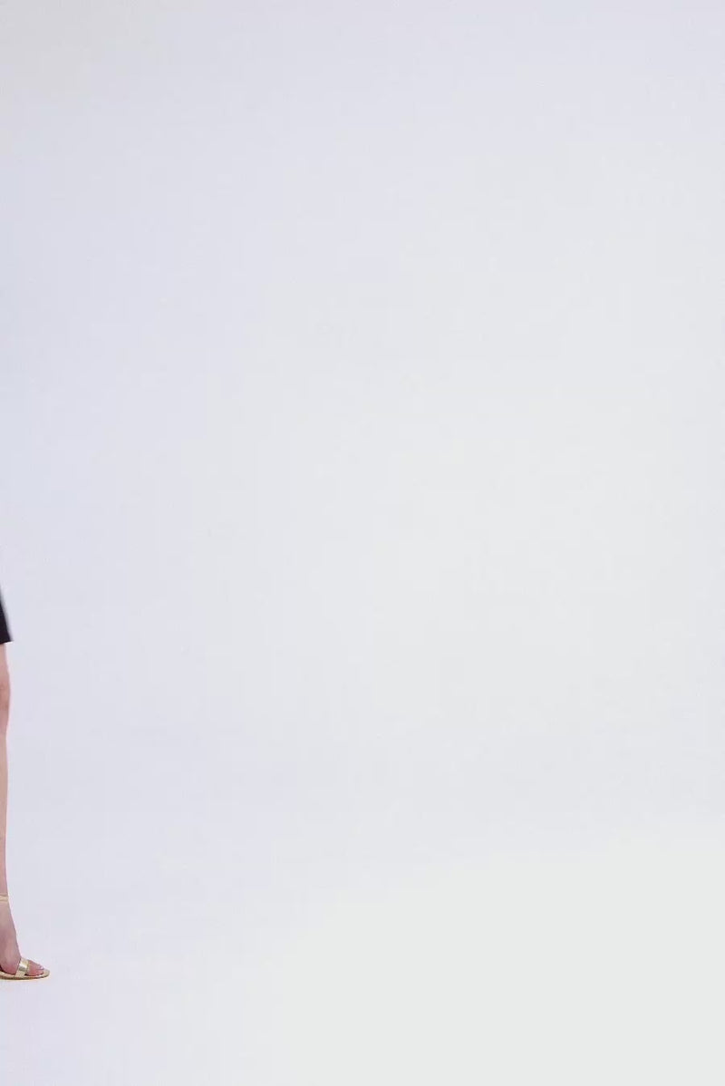 Robe en jersey marine légère avec silhouette emblématique à col licou, définie par un col froncé et des détails bijoux élégants en ton or. Coupée pour un mouvement gracieux du col haut à l'ourlet décontracté, elle offre un drapé raffiné et une sophistication sculpturale — une pièce chic sans effort pour des occasions de jour ou de soirée rehaussées.