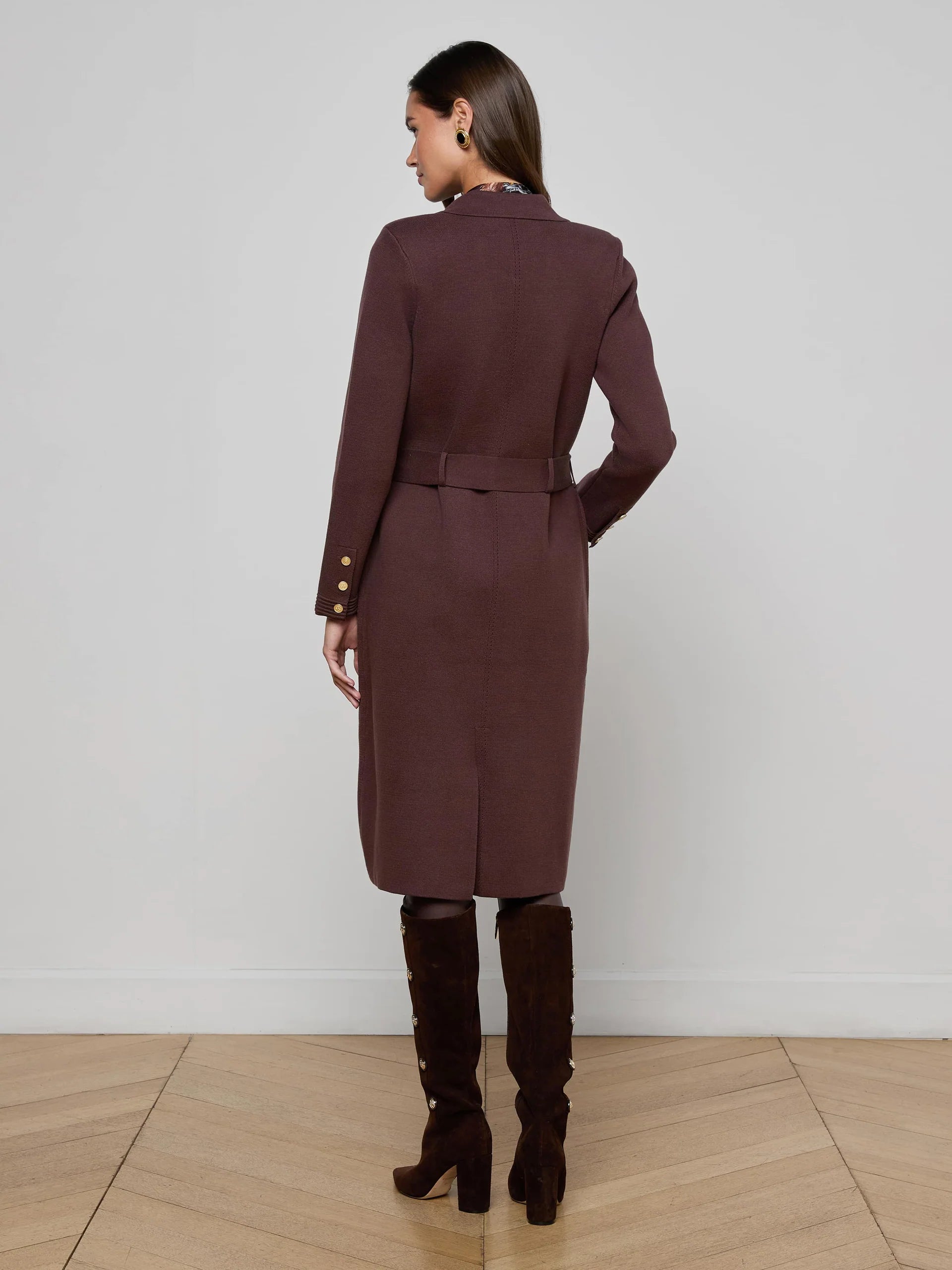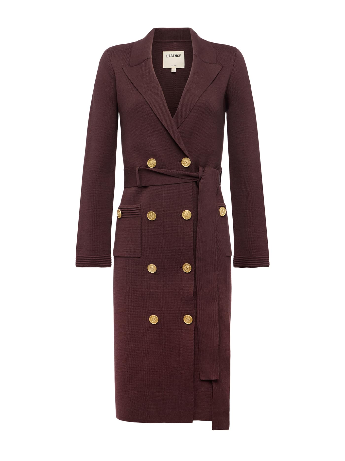 Le manteau Isabel allie une coupe nette à un tricot luxueux. Coupé dans une longueur midi raffinée, il présente un devant croisé avec des boutons à blason dorés et une ceinture à nouer qui cintrent la taille pour une finition flatteuse. Les revers structurés et les poches plaquées rendent hommage à la couture classique, tandis que la construction en tricot adoucit le look avec aisance et confort. Portez-le sur un jean et un tee-shirt pour un look facile et soigné.