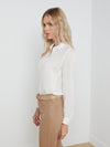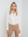 Un classique moderne. Le chemisier Nina est structuré aux bons endroits avec une coupe décontractée et flatteuse. Construction boutonnée raffinée avec un col ouvert chic et des manches longues drapées en soie noire.