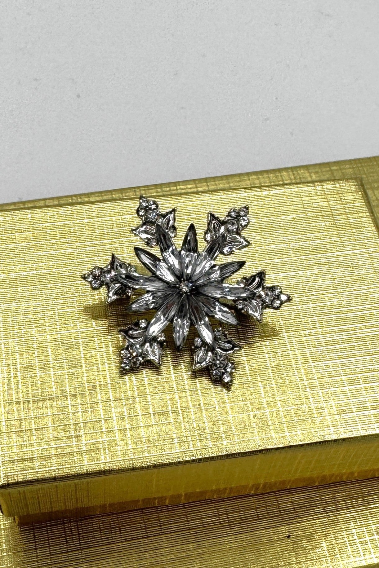 Cette élégante broche flocon de neige scintille avec des cristaux clairs taillés avec précision, disposés en un motif étoilé en couches. Sa finition ton argent rehausse l'éclat glacé, créant une pièce d'exception hivernale raffinée idéale pour les tenues de soirée, les manteaux ou les écharpes. Un accent intemporel de sophistication givrée.