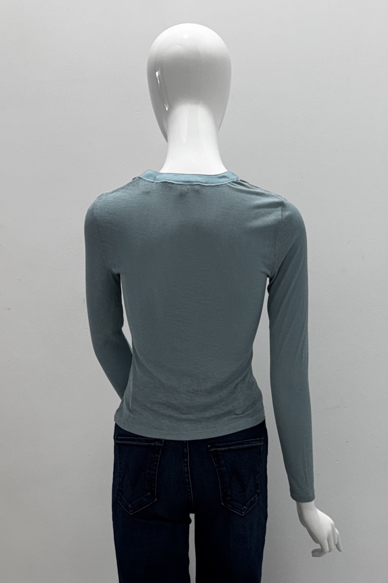 Le haut Drexler est un henley ajusté confectionné en jersey doux avec une subtile texture côtelée. Conçu avec une patte de boutonnage et des manches longues, il offre un potentiel de superposition sans effort dans un ton bleu ciel atténué pour une polyvalence quotidienne.