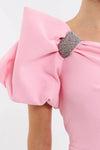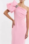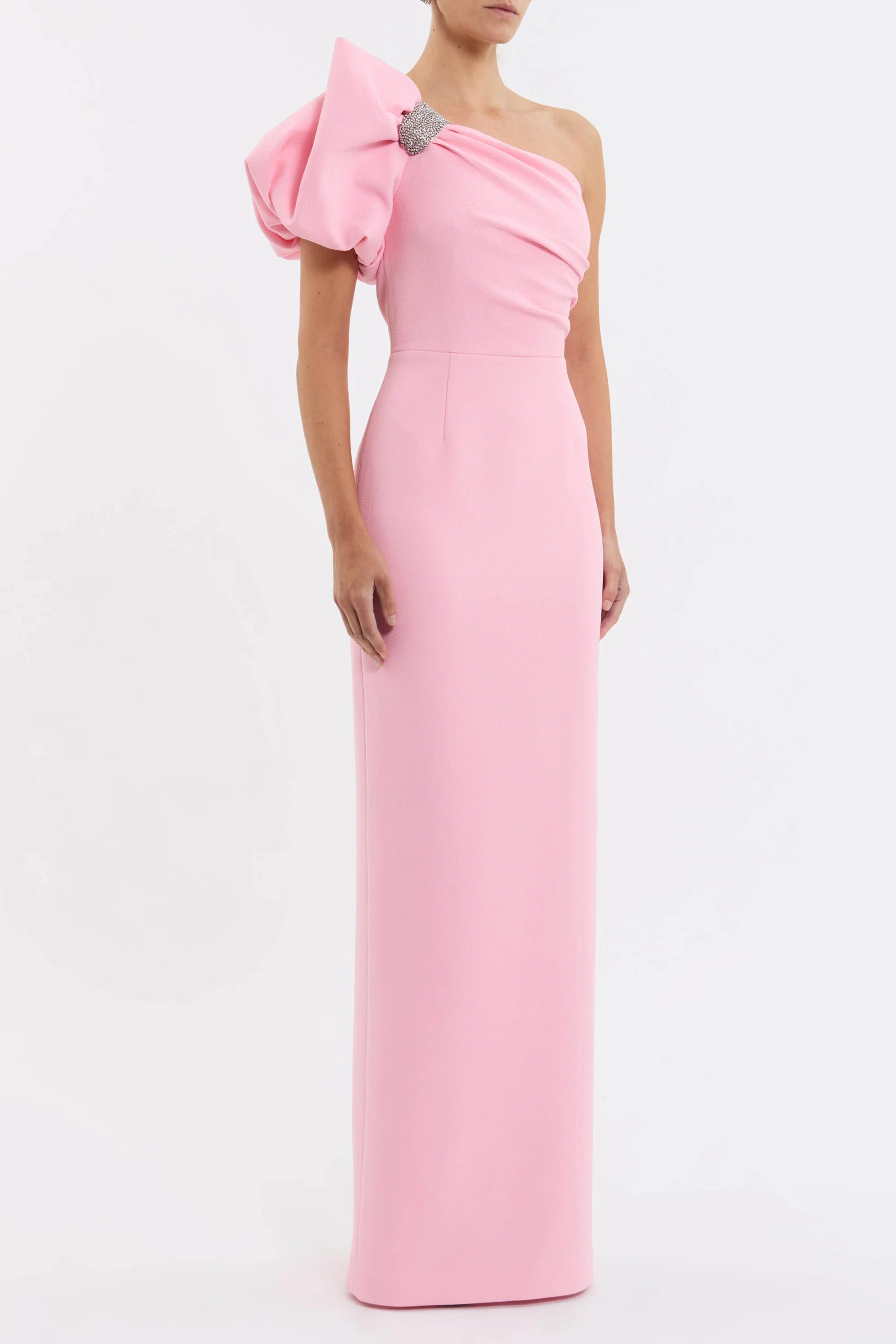 The Isabella Gown embodies timeless elegance and sophistication, crafted from bonded crepe in tickled pink. Featuring a one shoulder neckline, the voluminous puff sleeve is adorned with diamante details, adding a touch of glamour and opulence. The fitted bodice and column skirt, cinched at the waist, blend effortlessly to create a flattering silhouette, complete with a back split for ease of movement. Secured with a side zip fastening and fully lined for utmost comfort, this gown is a stunning choice for your next special occasion.