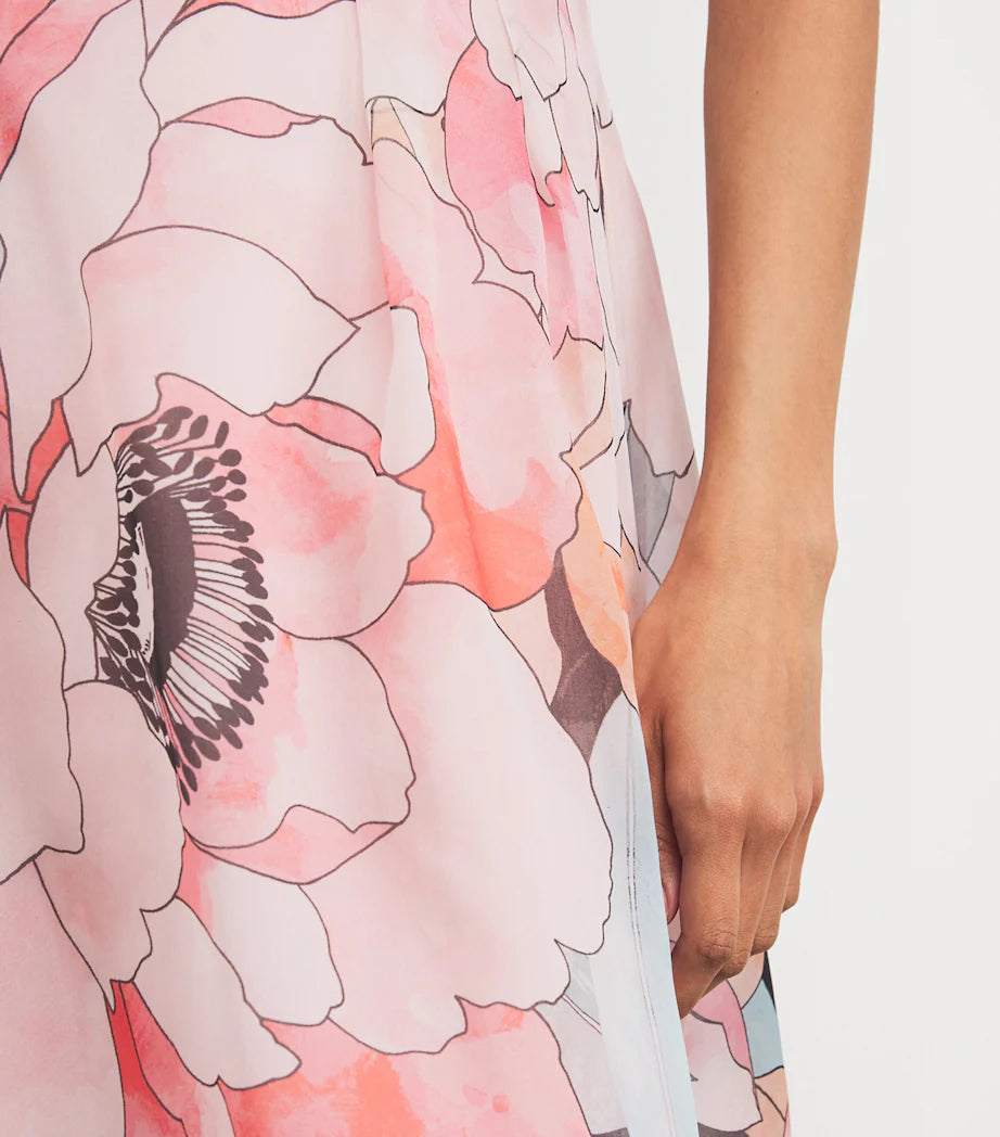Rebecca Vallance introduces her bridal collection – a line-up brimming with winsome charm that caters to any celebratory occasion. This midi dress is defined by an array of abstract florals that cascade across its flowing silhouette – a seamless fusion of elegance and allure that captivates every onlooker.