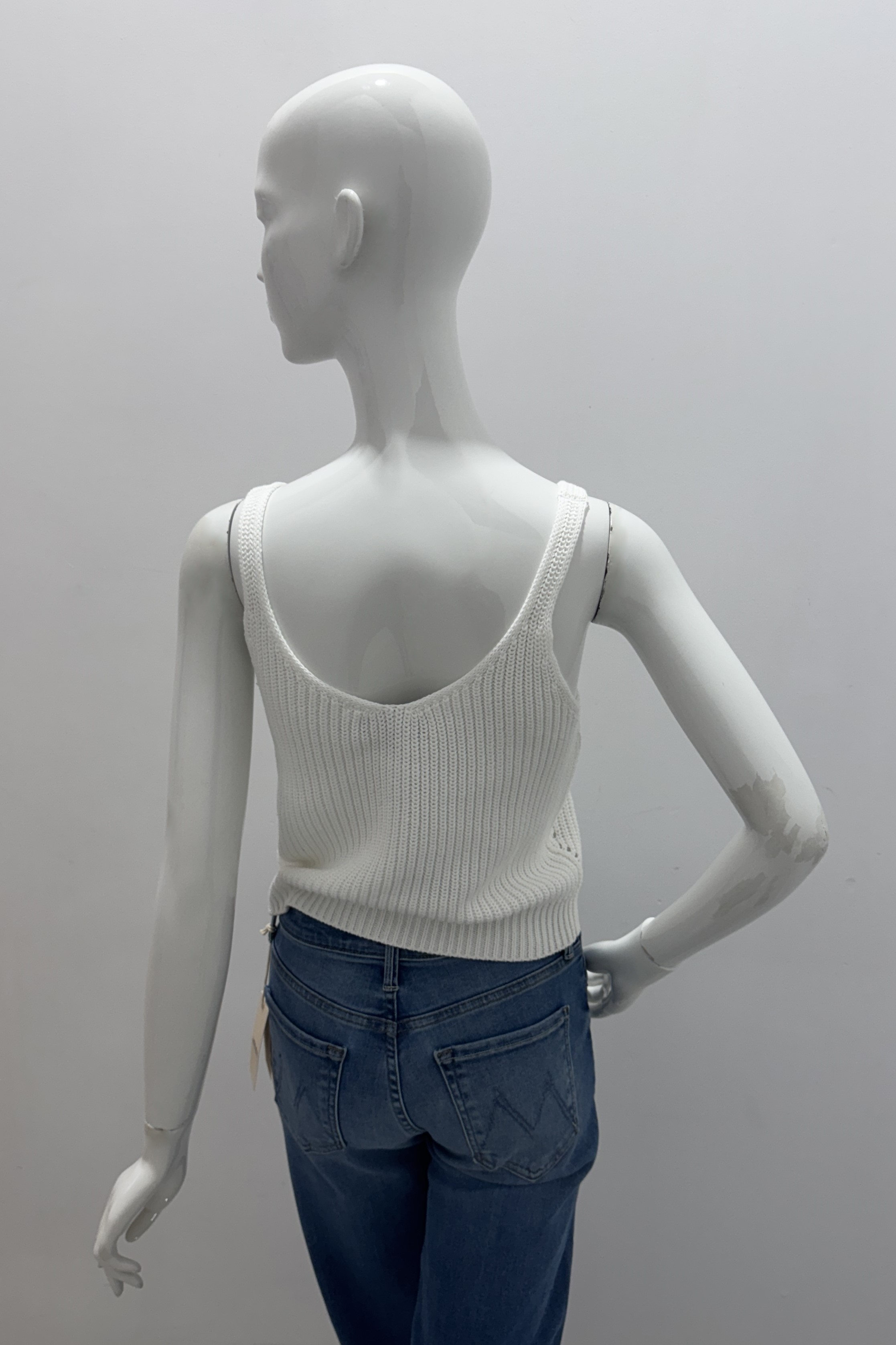 A timeless essential, this knitted pullover tank top by Repeat is crafted from soft, breathable cotton. Featuring a flattering U-neckline and ribbed texture, it offers a relaxed yet structured silhouette. Perfect for layering or wearing solo, this versatile piece effortlessly complements both casual and polished looks.